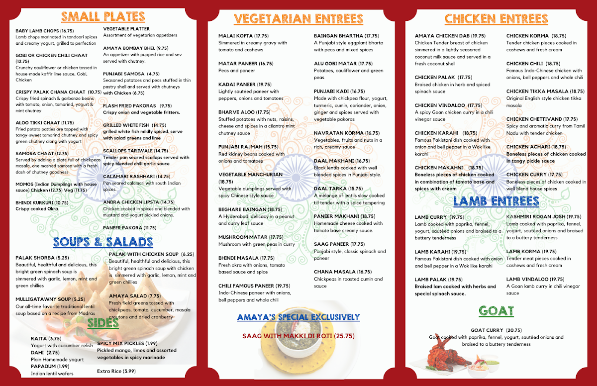 Welcome to Amaya Indian Cuisine, located at 1900 S Clinton Ave, Rochester, NY. This celebrated eatery brings the rich tapestry of Indian flavors to life with a menu that is both diverse and authentic.
